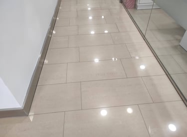 Estética renovada: Unificamos el brillo para que el pavimento luzca higiénico y con un acabado profesional.